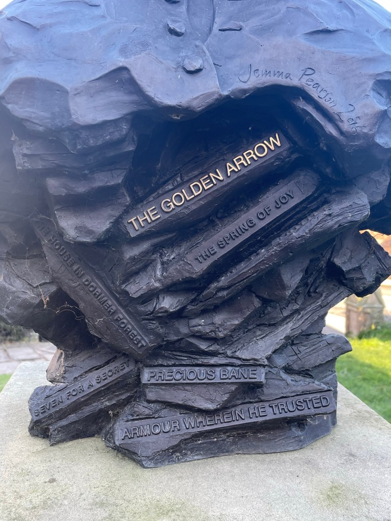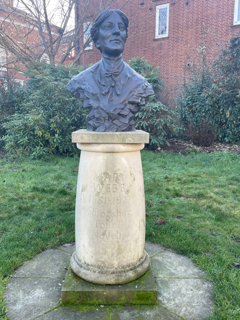 The back of Mary’s bust reveals a pile of her books and is situated outside Shrewsbury Library.  Nice touch.