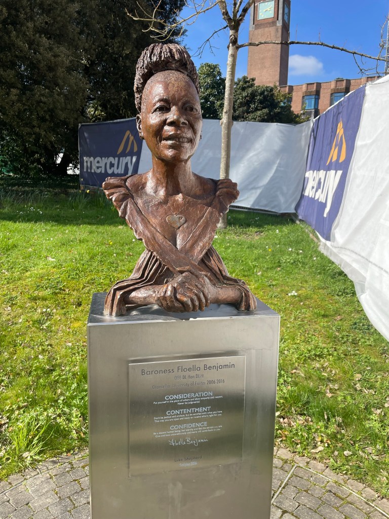 When I find Floella’s bust on the University of Exeter’s campus, I’m instantly irked by the tarpaulin behind spoiling the pictures.  And then I realise I can just take a shot from a different angle and see it another way.  Let that be a lesson in life right there.