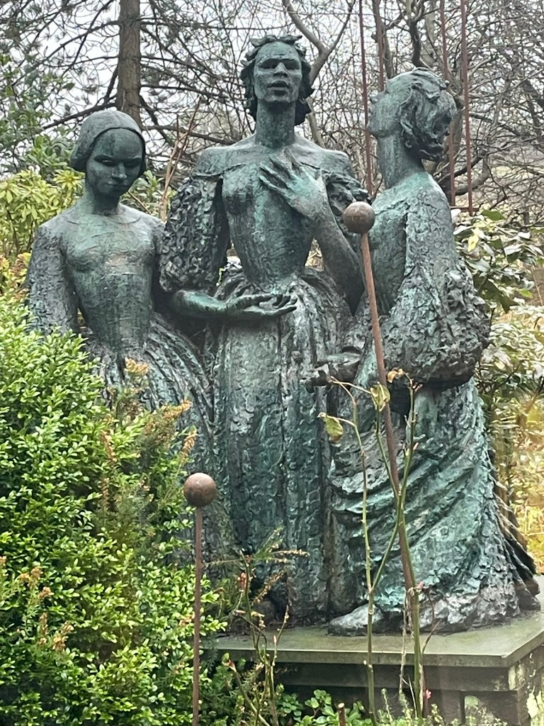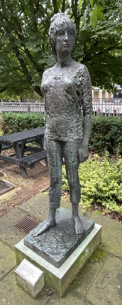 No big deal, I guess. There’s a statue to a woman named Julia to see at the Harlow Playhouse – a replica had been previously viewed last year, tucked away in a quiet in a cul-de-sac. Yes, it is a named statue although fictional but I’m in Harlow and it’s rude not to. I pass by the water gardens where Elisabeth Frink’s ‘Boar’ stands, floating above the water. Nearby there is ‘Eve’ by Rodin. Auguste Rodin! In Harlow! There’s also ‘Kora’ – a fictional female statue tucked away on the high street.