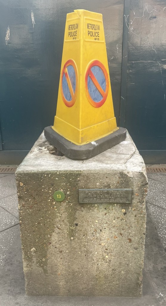 Elisabeth already stands tall outside Coventry’s Herbert Gallery but the original cast is a grade II listed piece purchased by Harlow Art Trust soon after it was created. I check the sites, use Google maps, but am struggling to find it. I flag down a couple who seem slightly embarrassed (in the way that only Brits can be) when they cannot help locate it. But they needn’t be. I return to where I think it should be and there I spot it. Or at least I spot the spot. A traffic cone perched on an empty plinth (another quintessentially British gesture). There’s no mistaking that this is where she should be. Frustrating. But is it art?
