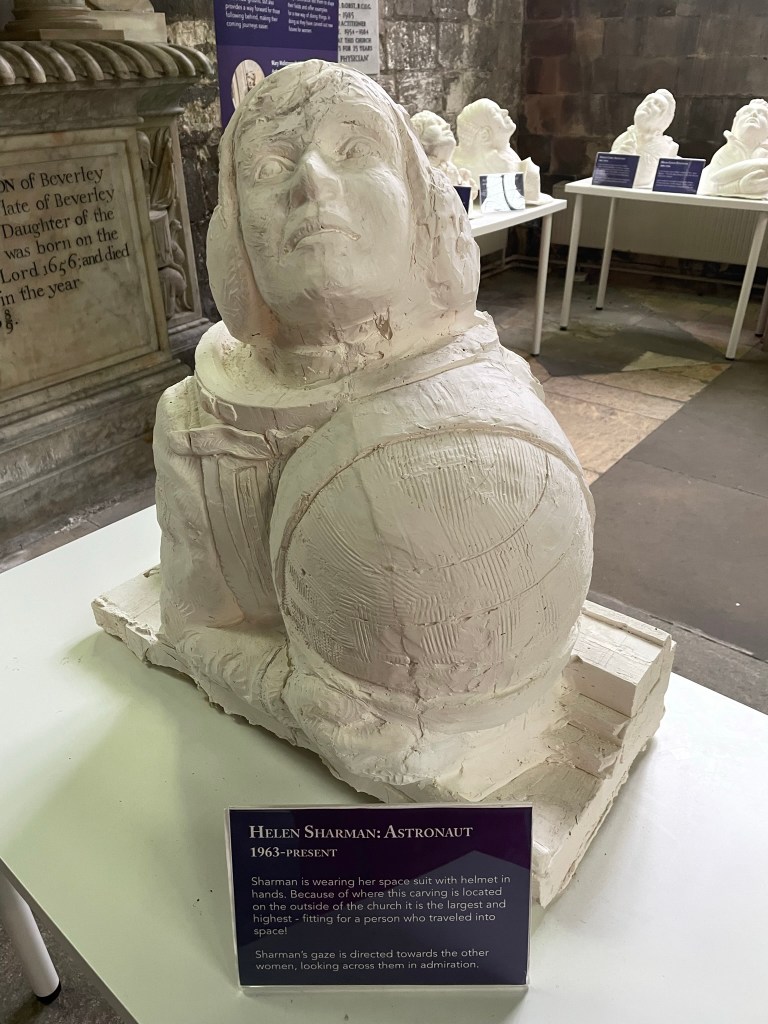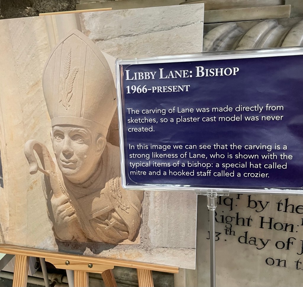 So you don’t have to endure my jaunty phone camera angles, the exhibition also features plaster casts of the carvings. Phew. The initial plan for one carving to be Queen Elizabeth was changed to Libby Lane, the first female Bishop in the myself, Church of England.