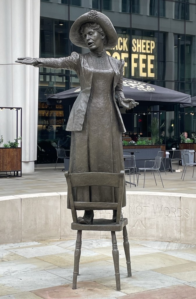 I’m learning along the way here, not just about who these women are and how to steer myself across the UK, but how statues come about.  Margaret Thatcher’s Grantham statue came in at the tune of £300,000 so it is not a decision given lightly.  The bigger the statue, invariably, the higher the price tag.  Materials aren’t free.  Time and precision is not free.  Nor is the installation and subsequent upkeep costs.  Captured lifesize as her younger self and at a cost of £24,000 it weighs in considerably cheaper than other monuments and yet evoked criticism and anti-social behaviour.   Sadly, the statue was moved in 2024 to the University’s courtyard garden and now stands with her back to a glass wall, which, as the artist points out, makes it less accessible as an art piece, with the opportunity missed of walking round the whole piece as art intended.
